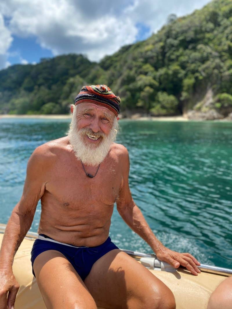 There have been many achievements and many dramas during his 100,000 mile adventure: Gangerl has visited a hundred countries – he was the first yachtsman to visit the pacific island of Nanumea; he has been imprisoned; faced pirates; been robbed; dived among dangerous moray eels – there are more than 60 warships lying on the ocean floor in Chuuk Lagoon – and he has survived Dengue fever. Ashore, he and his backpack have trekked across a hundred-thousand miles.