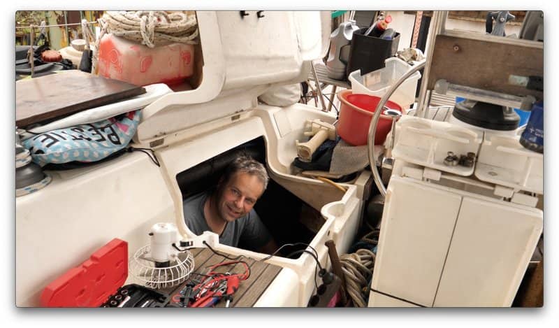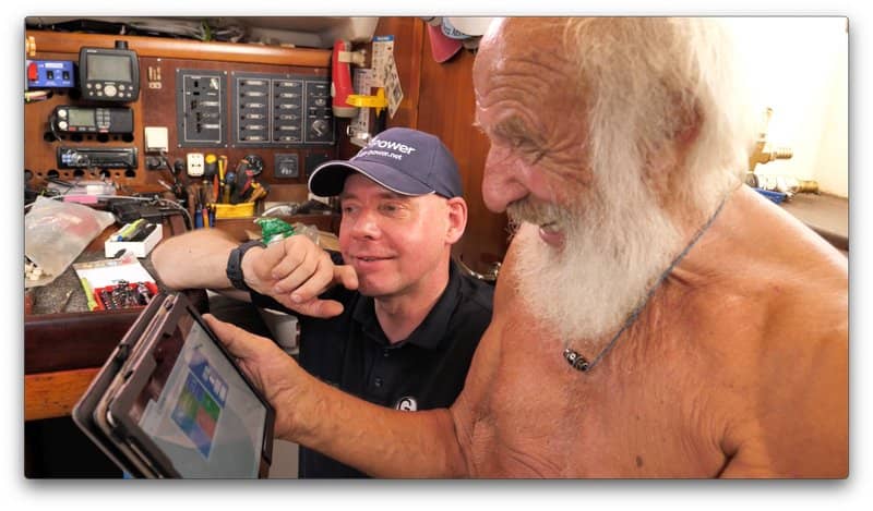 The boat Gangerl built was eventually lost in the Seychelles. These day he sails a 35′ Dufour. As he approaches his 82nd birthday, Gangerl shows no sign of slowing down. His main concern – when marine energy system and lithium battery specialists GS-Power caught up with him – was that his electronics were in a dangerous condition – threatening the continuity of his extended voyage.