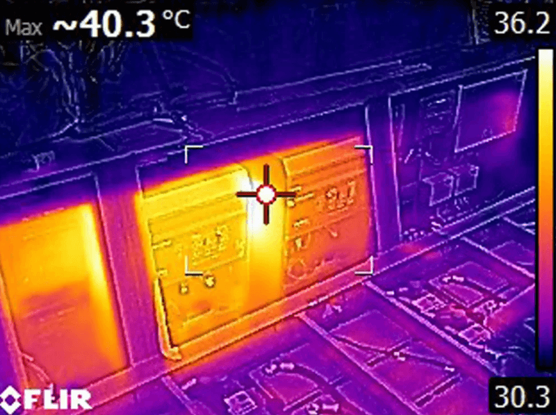 After launch, every socket and circuit breaker was tested including insulation resistance – as well as a thermal imaging test – in which the system is loaded with its maximum possible power (charging and discharging). The thermal imaging camera checks the temperatures of all components, terminals, and switches to identify any potential faults.