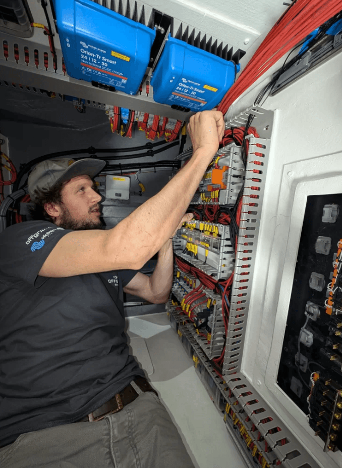 Sailectron Services seized every opportunity to prefabricate as many components as possible in their workshop in Austria. Pre-configured and tested components were then shipped to Thailand – greatly accelerating the installation process. Within three weeks, the system was integrated into the yacht and tested by their four-person team. Post launch, the system underwent final commissioning before delivery to the client.