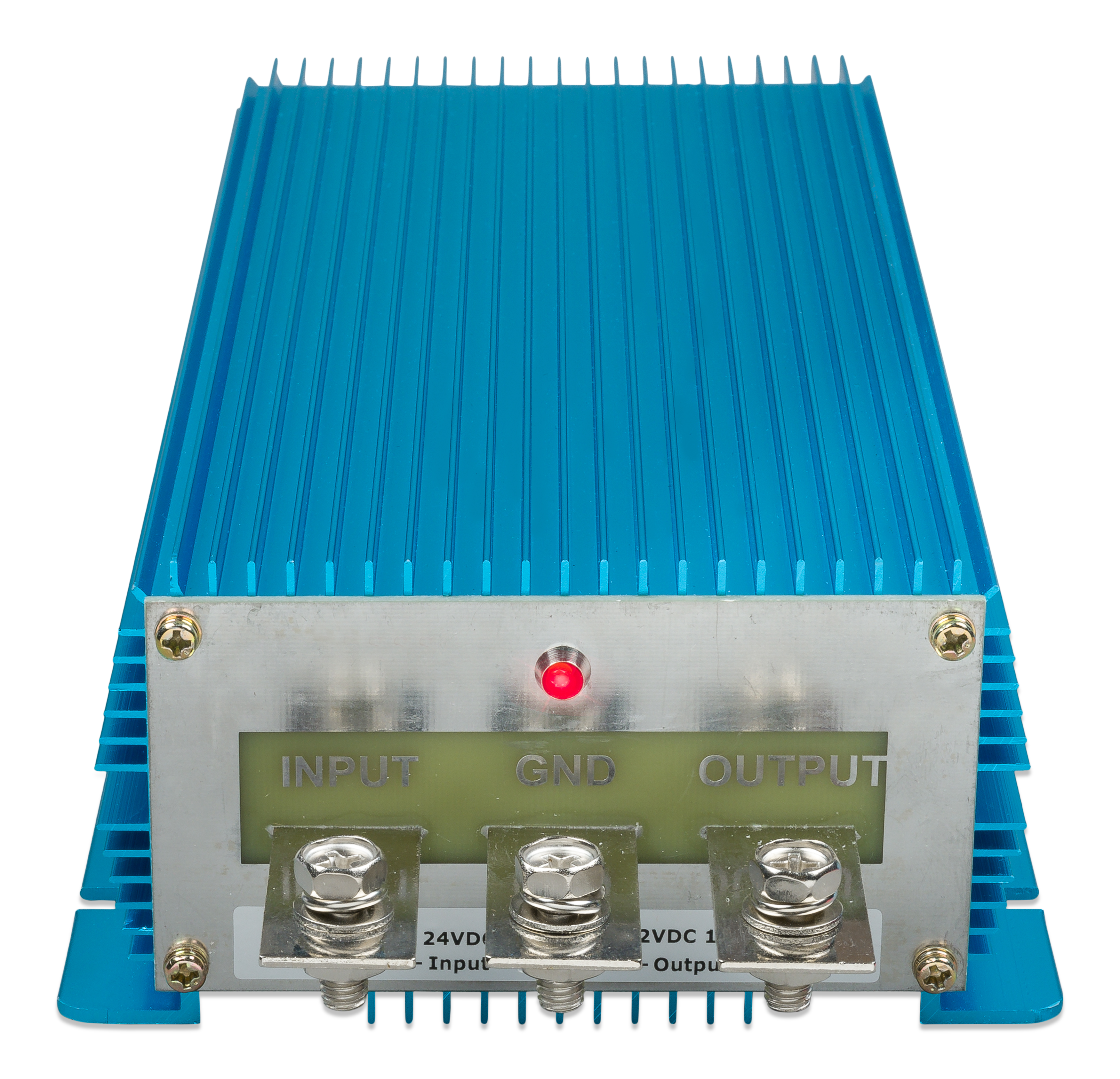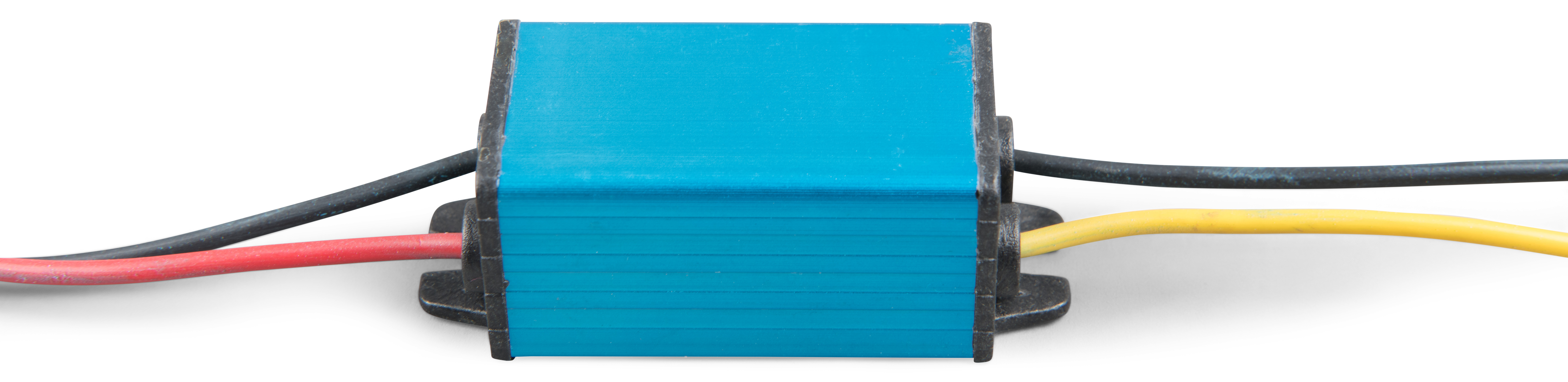 Vatten, olja eller damm kommer inte att skada Orion IP67 DC-DC-omvandlaren. Höljet är tillverkat av gjuten aluminium och elektroniken är ingjuten i plast.