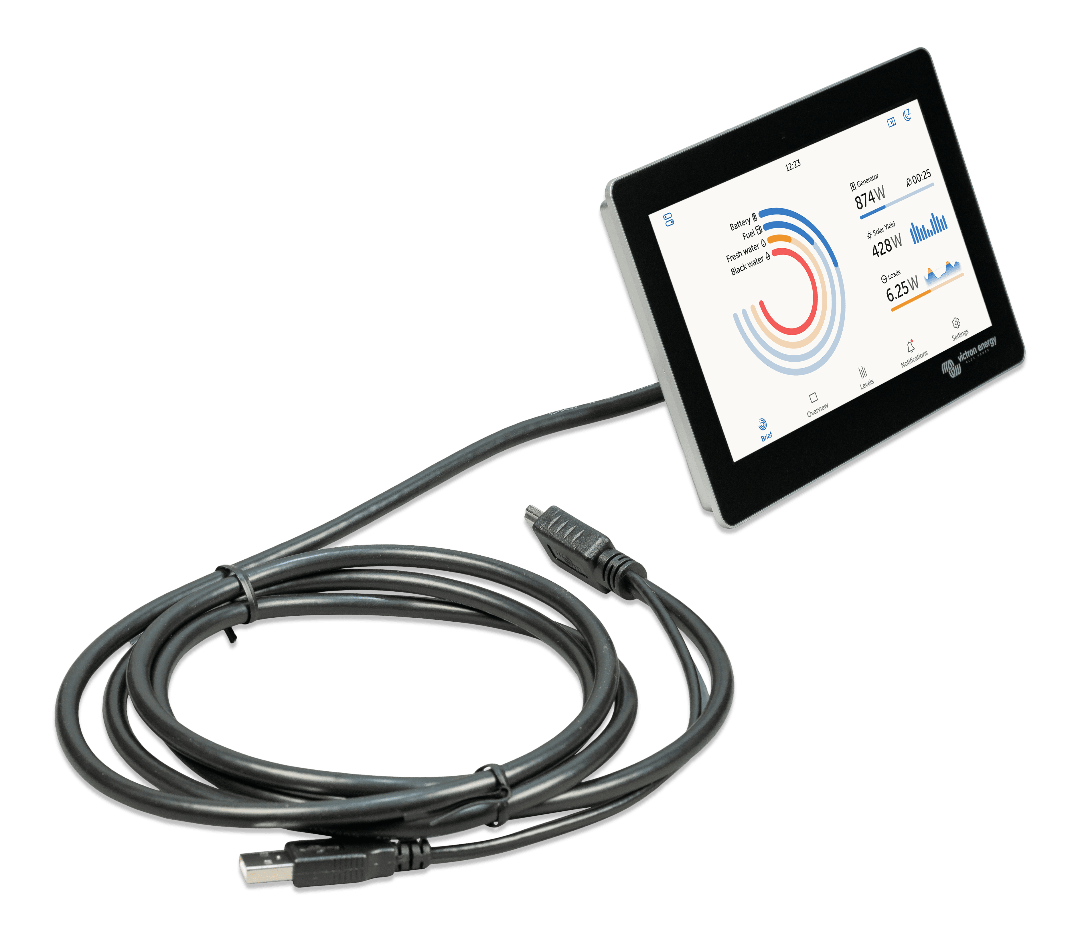 GX Touch 50 och GX Touch 70 är skärmtillbehör till vår Cerbo GX. Pekskärmarna på fem och sju tum ger dig en direkt översikt av ditt system och gör det möjligt att ändra inställningar på ett ögonblick. De ansluts enkelt till Cerbo GX med en kabel. Deras supersmala vattentäta design, toppmonterbara uppsättning och enkla installation ger dig stor flexibilitet att skapa en ren och klar panel.