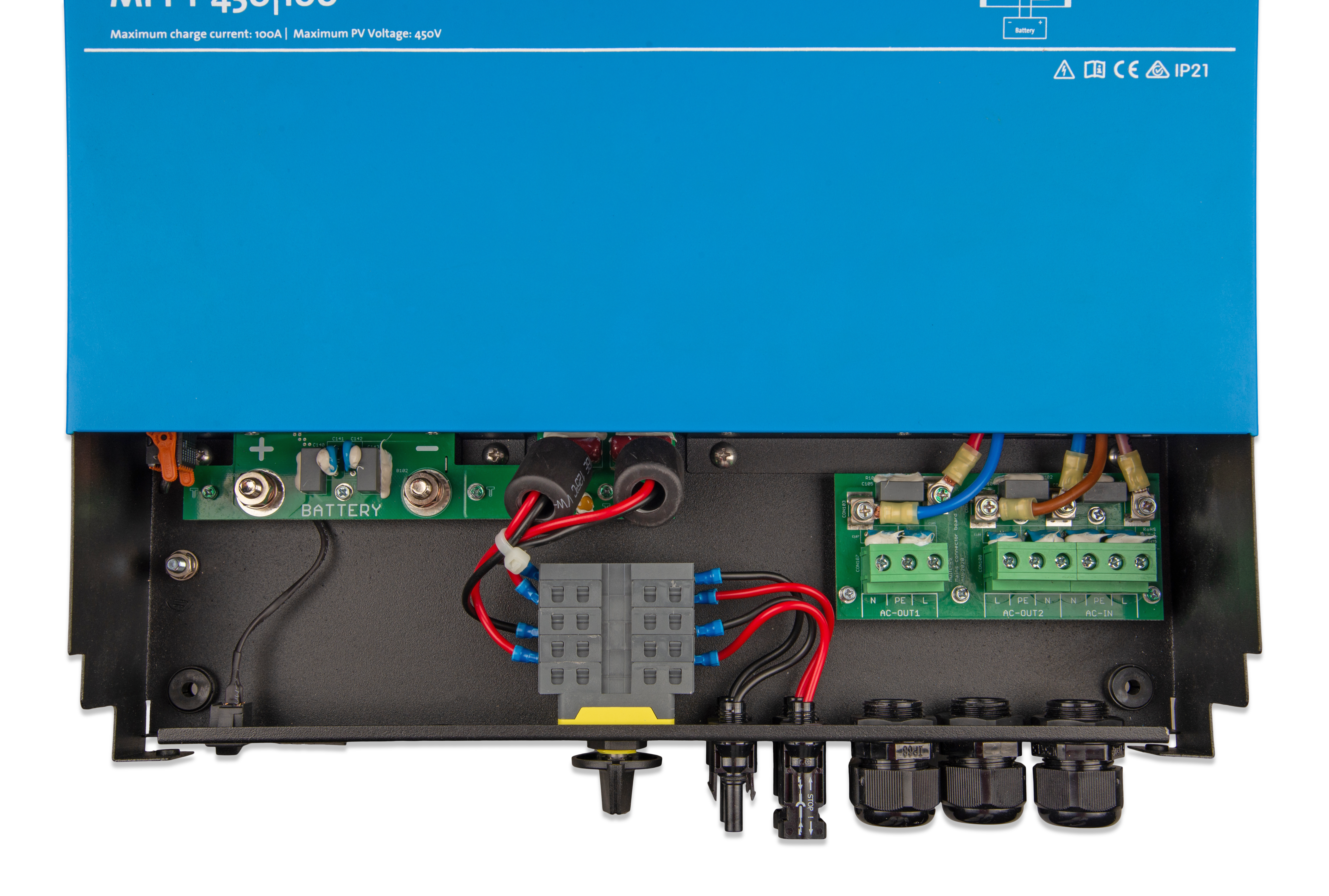 Multi RS Solar 48/6000 är en växelriktare/laddare på 48 V 6 kVA med två enskilda MTPP tracker-ingångar (spårare) på 3 kWp solcellsenergi och 450 V, för sammanlagt 6 kWp solcellsenergi.
