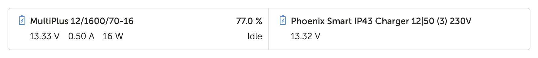 Dla każdego ze skonfigurowanych akumulatorów portal VRM wyświetli jego nazwę, napięcie, natężenie prądu i poziom naładowania.